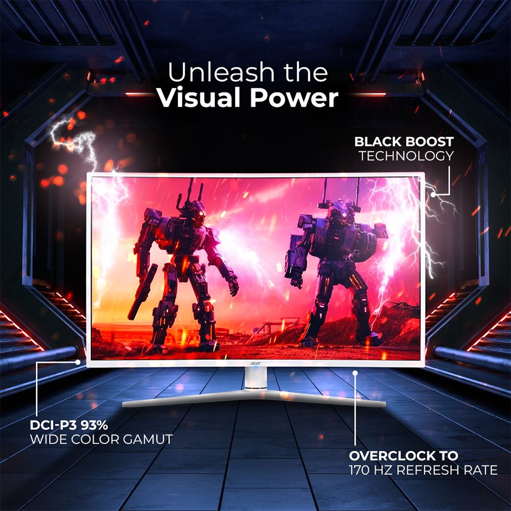 The Acer XZ6 monitor is an ideal choice to elevate your gaming experience. The Black Boost technology of this monitor enables you to view the dark regions more precisely so you can see every step of your enemies to reign in the gaming world. With a refresh rate of 170 Hz, this monitor delivers fluid and smooth visuals for an elevated gaming experience. The 1 ms response time of this monitor ensures the reduction of lag, visual blurring, and ghosting for you to enjoy seamless and uninterrupted gaming sessions.