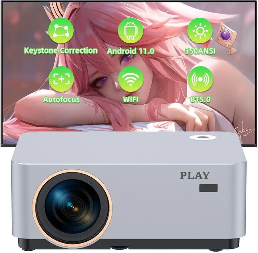 PLAY MP1 Newest Android 11 4k Native Full HD 2+16GB WIFI BT 500 Inch Display Advance (12000 lm / 4 Speaker / Wireless / Remote Controller) Portable Projector (White/ Black)